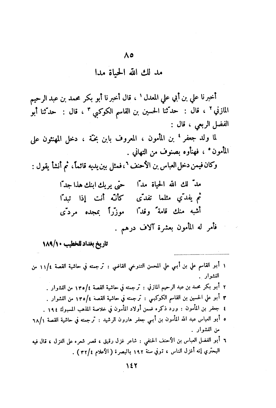أخبرنا علي بن أبي علي المعدل «1» ، قال أخبرنا أبو بكر محمد بن عبد الرحيم المازني «2» ، قال: حدّثنا الحسين بن القاسم الكوكبي «3» ، قال: حدّثنا أبو الفضل الربعي، قال: