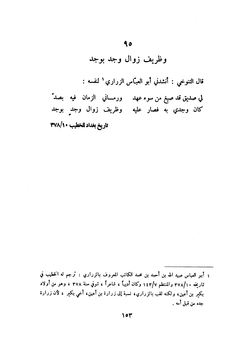 قال التنوخي: أنشدني أبو العبّاس الزراري «1» لنفسه: