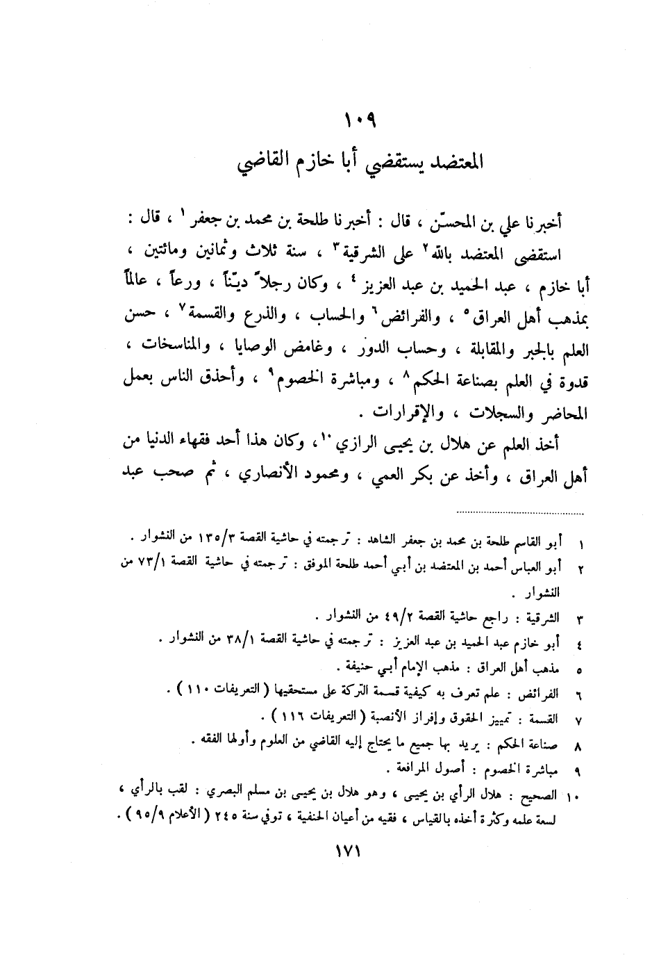 109 المعتضد يستقضي أبا خازم القاضي