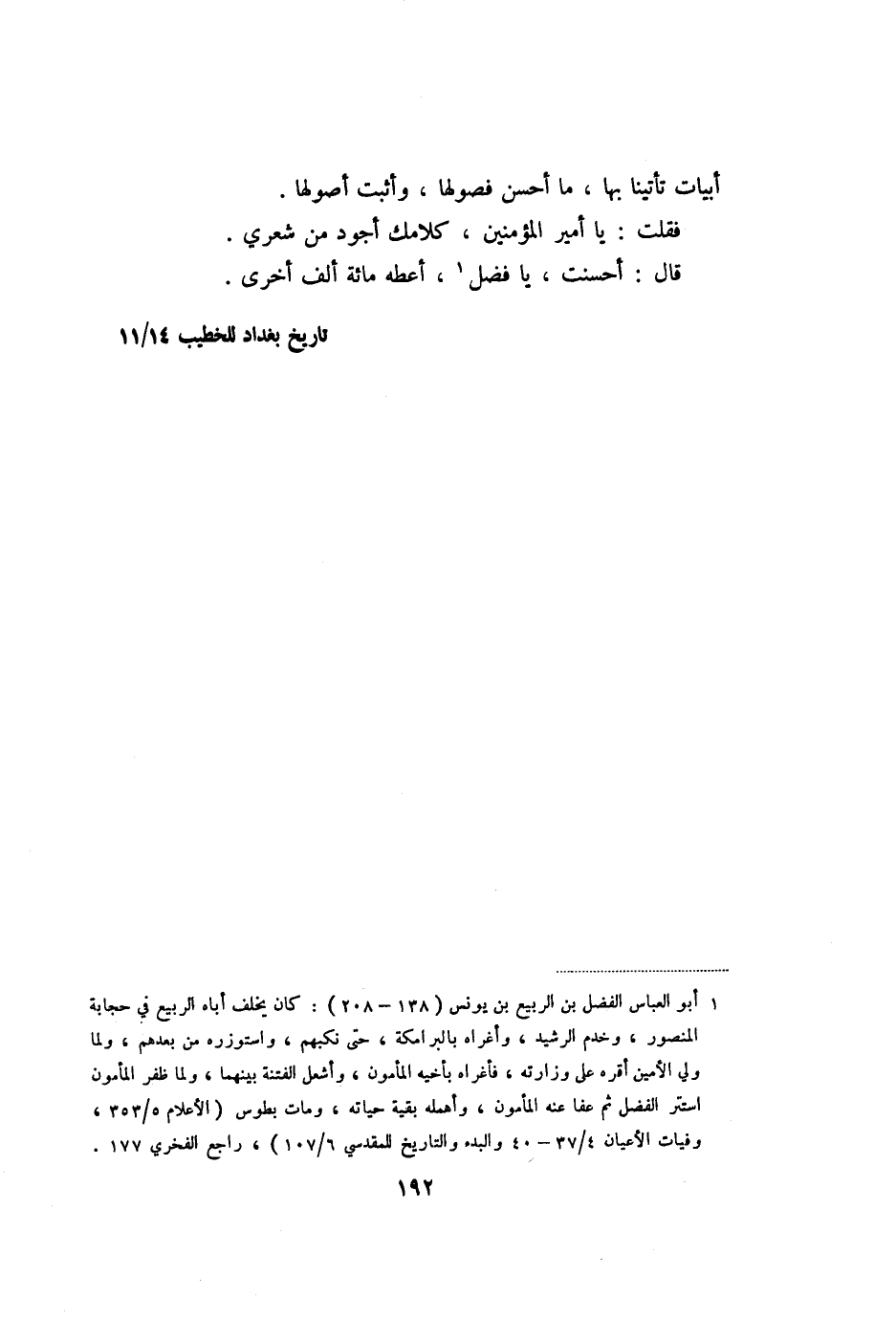 قال: أحسنت، يا فضل «1» ، أعطه مائة ألف أخرى.