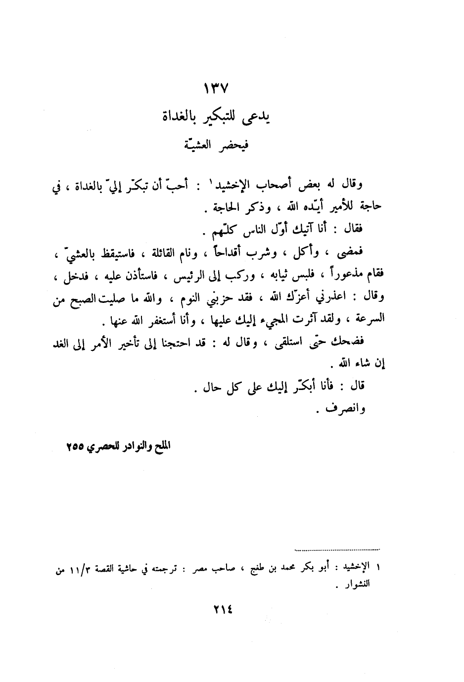 137 يدعى للتبكير بالغداة فيحضر العشيّة