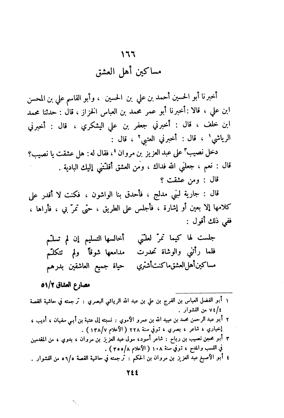 دخل نصيب «3» على عبد العزيز بن مروان «4» ، فقال له: هل عشقت يا نصيب؟