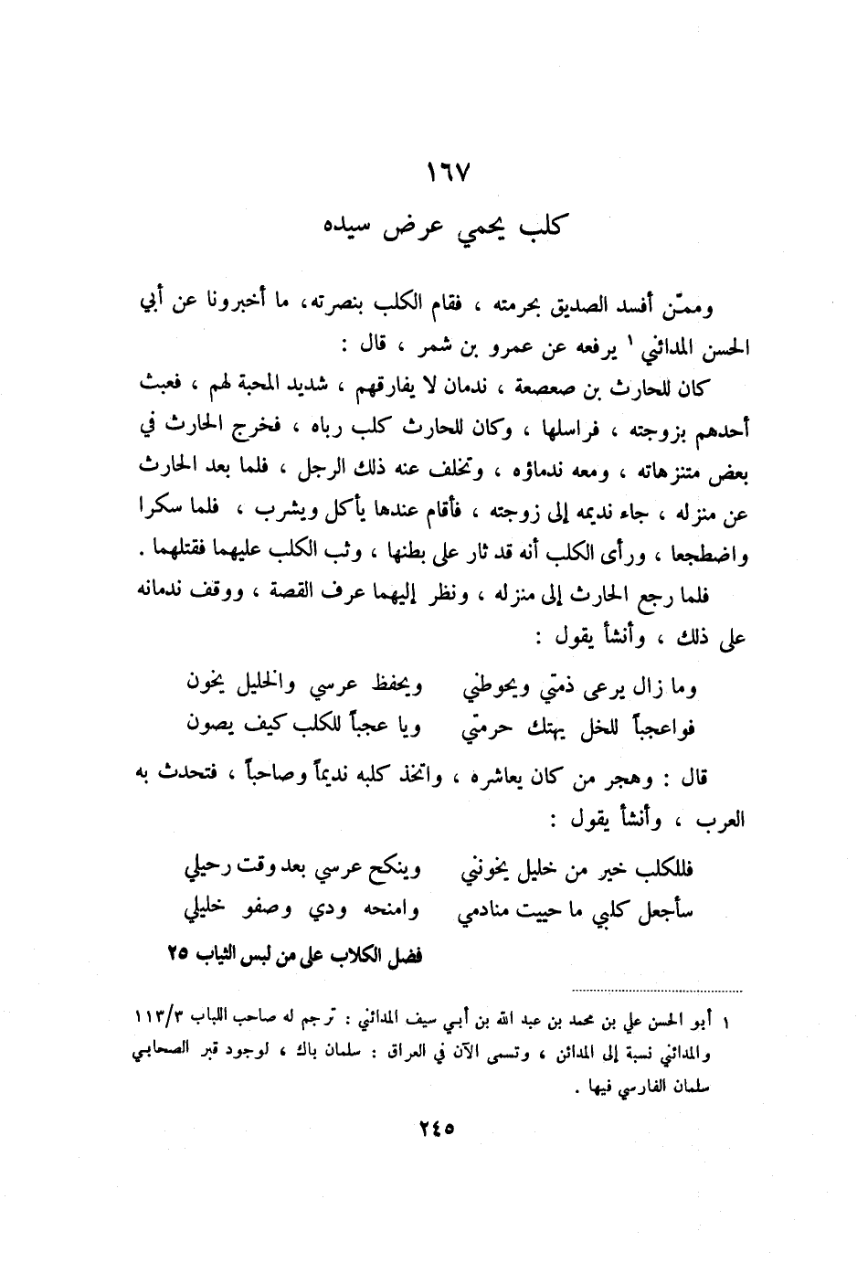 وممّن أفسد الصديق بحرمته، فقام الكلب بنصرته، ما أخبرونا عن أبي الحسن المدائني «1» يرفعه عن عمرو بن شمر، قال:
