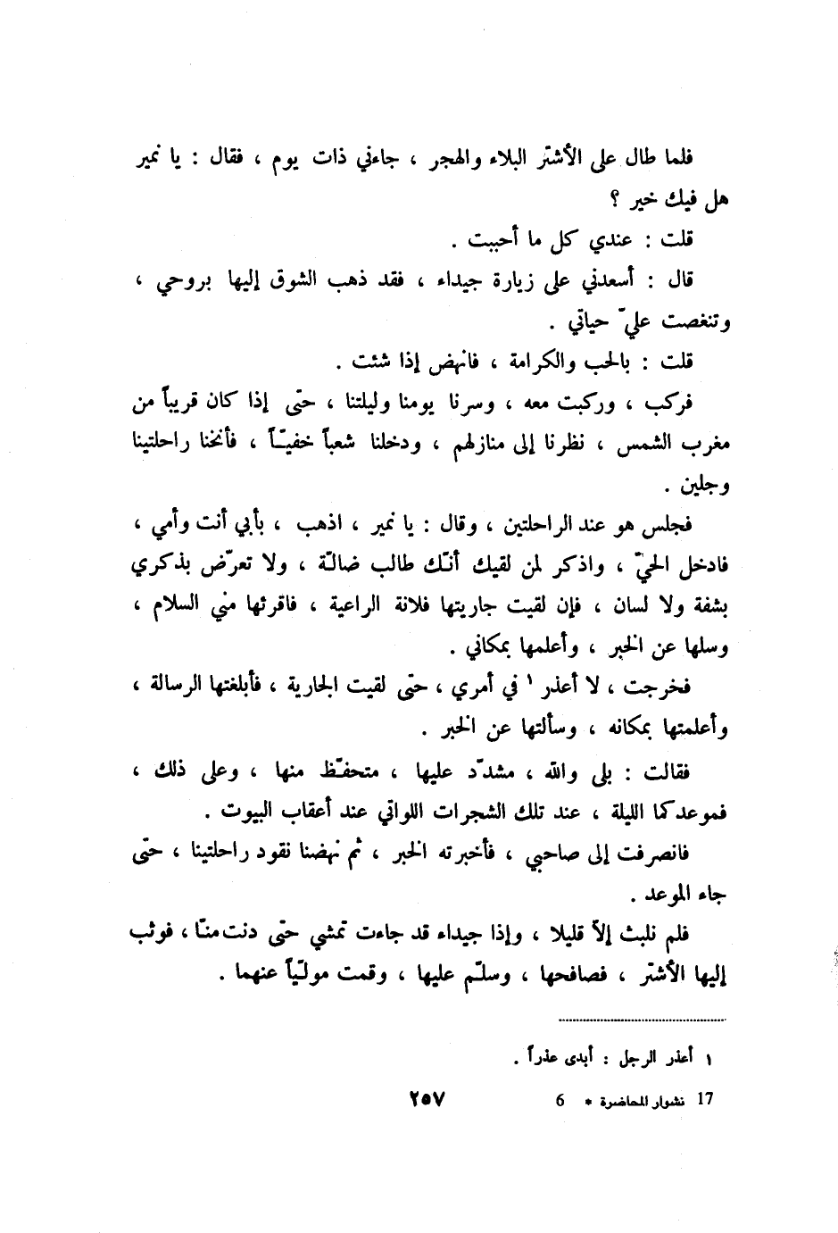 قال: أسعدني على زيارة جيداء، فقد ذهب الشوق إليها بروحي، وتنغصت عليّ حياتي.