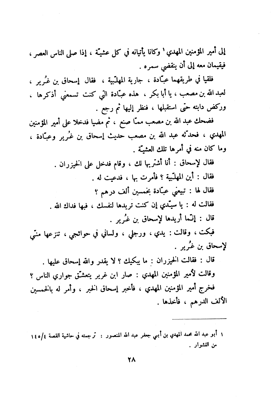 أمير المؤمنين المهدي «1» وكانا يأتيانه في كل عشيّة، إذا صلى الناس العصر، فيقيمان معه إلى أن ينقضي سمره.