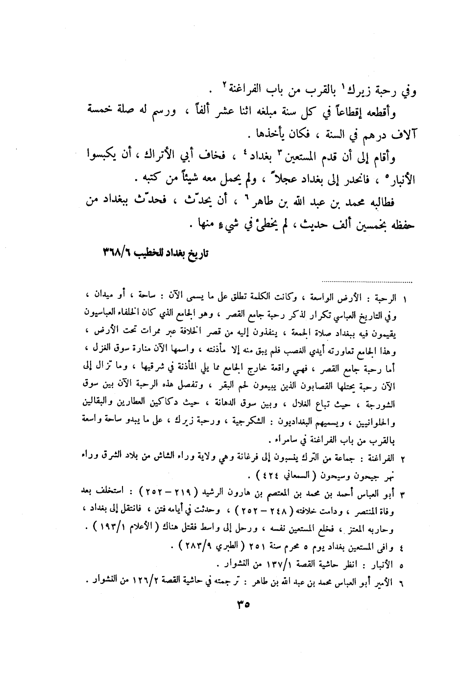 وأقام إلى أن قدم المستعين «3» بغداد «4» ، فخاف أبي الأتراك، أن يكبسوا الأنبار «5» ، فانحدر إلى بغداد عجلا، ولم يحمل معه شيئا من كتبه.