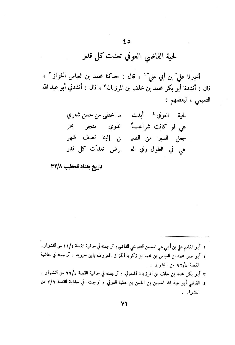 ، قال: حدّثنا محمد بن العباس الخزاز «2» ، قال: أنشدنا أبو بكر محمد بن خلف بن المرزبان «3» ، قال: أنشدني أبو عبد الله التميمي، لبعضهم: