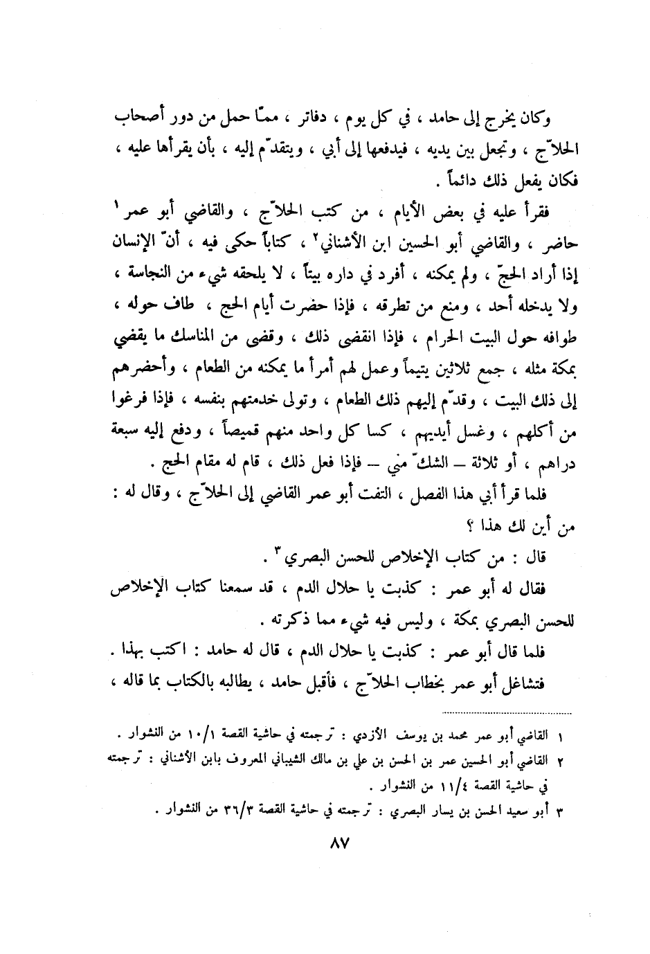 فتشاغل أبو عمر بخطاب الحلّاج، فأقبل حامد، يطالبه بالكتاب بما قاله،