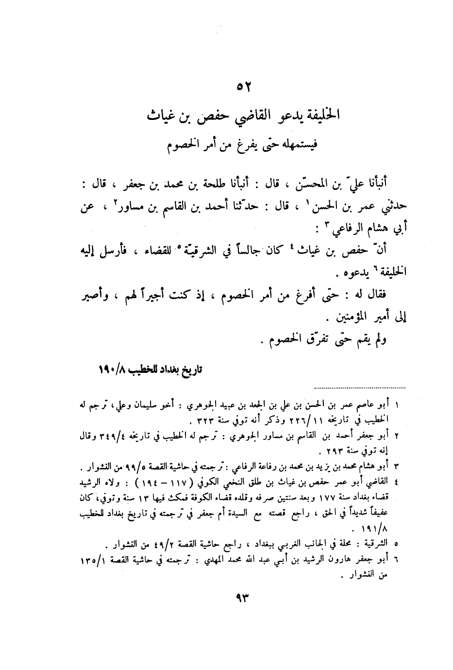 52 الخليفة يدعو القاضي حفص بن غياث فيستمهله حتى يفرغ من أمر الخصوم