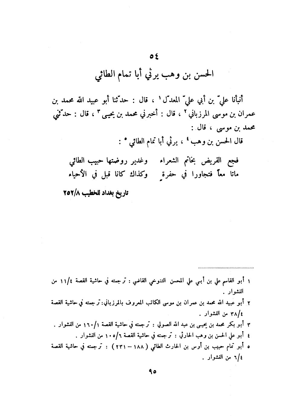 54 الحسن بن وهب يرثي أبا تمام الطائي