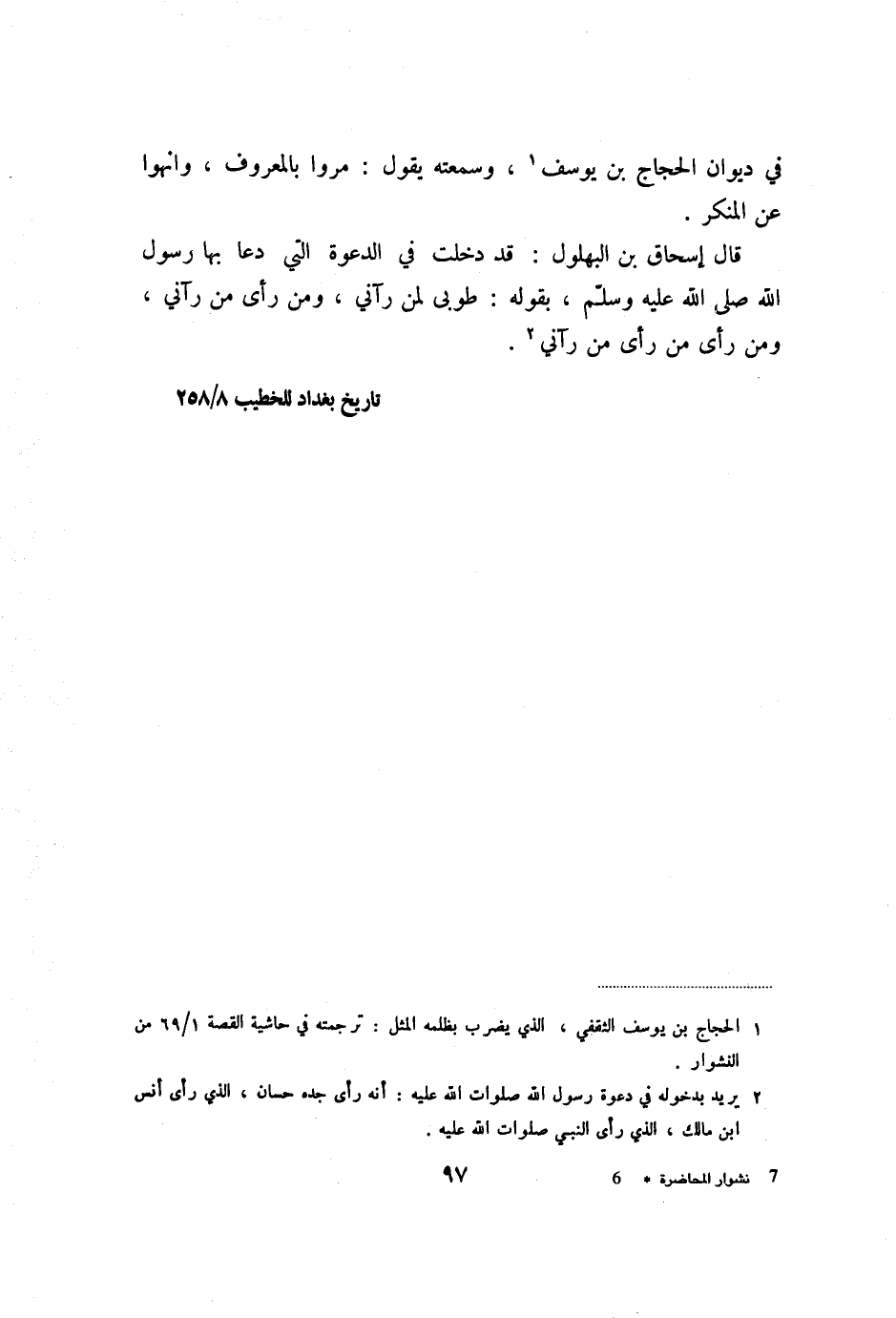 في ديوان الحجاج بن يوسف «1» ، وسمعته يقول: مروا بالمعروف، وانهوا عن المنكر.