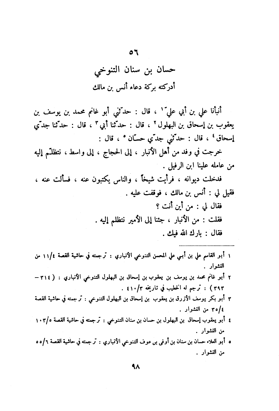 56 حسان بن سنان التنوخي أدركته بركة دعاء أنس بن مالك