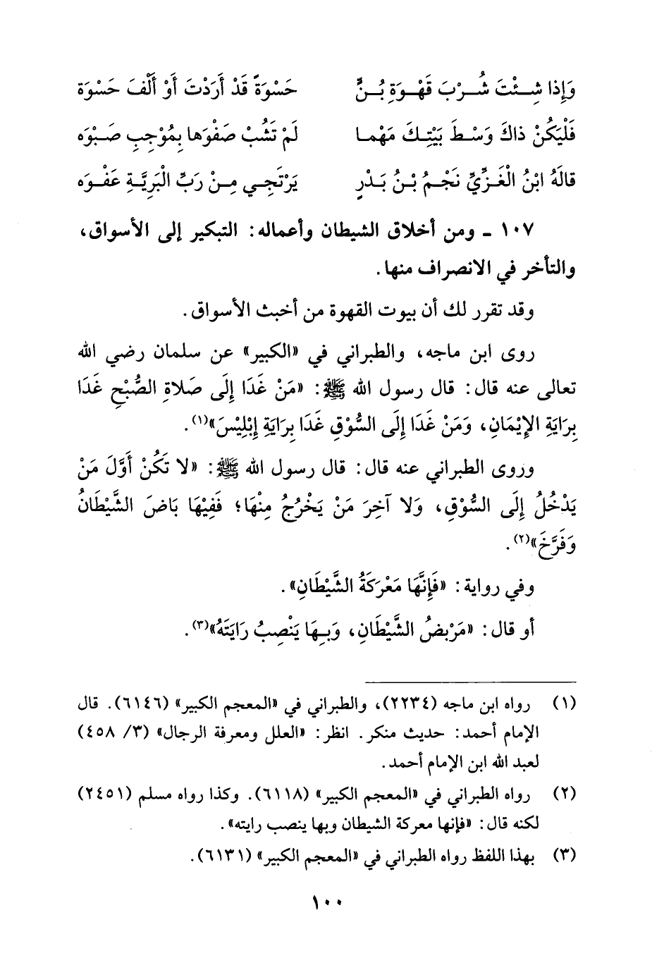 107 - ومن أخلاق الشيطان وأعمالة: التبكير إلى الأسواق، والتأخر في الانصراف منها.