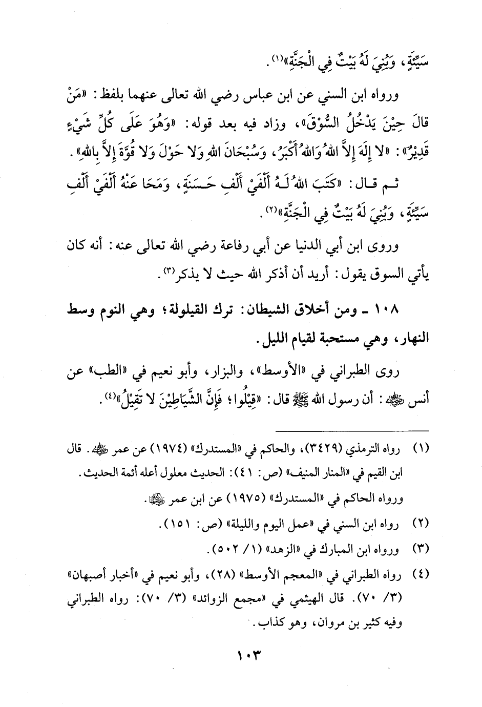 108 - ومن أخلاق الشيطان: ترك القيلولة؛ وهي النوم وسط النهار، وهي مستحبة لقيام الليل.
