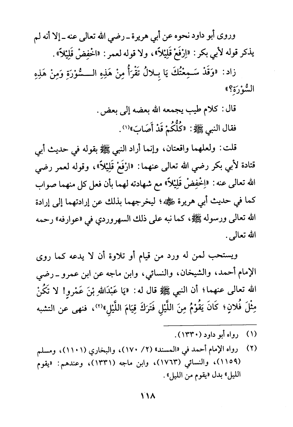 قلت: ولعلهما واقعتان، وإنما أراد النبي - صلى الله عليه وسلم - بقوله في حديث أبي قتادة لأبي بكر رضي الله تعالى عنهما: "ارْفَعْ قَلِيْلاً"، وقوله لعمر رضي الله تعالى عنه: "اِخْفِضْ قَلِيْلاً" مع شهادته لهما بأن فعل كل منهما صواب كما في حديث أبي هريرة - رضي الله عنه -؛ ليخرجهما بذلك عن إرادتهما إلى إرادة الله تعالى ورسوله - صلى الله عليه وسلم -، كما نبه على ذلك السهروردي في "عوارفه" رحمه الله تعالى.