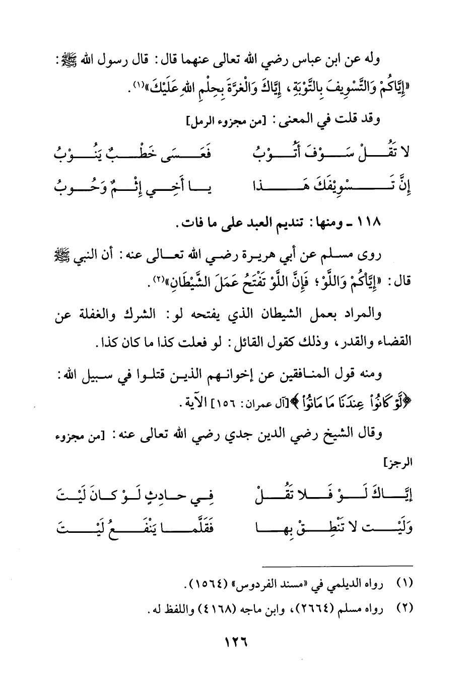 إيَّاكَ لَوْ فَلا تَقُلْ .... فِي حادِث لَوْ كانَ لَيْتَ
