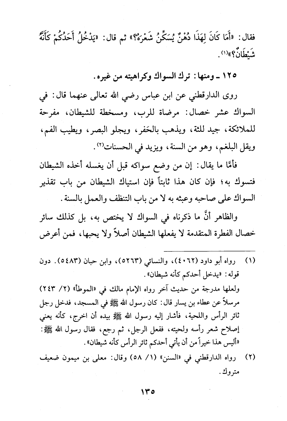 125 - ومنها: ترك السواك وكراهيته من غيره.