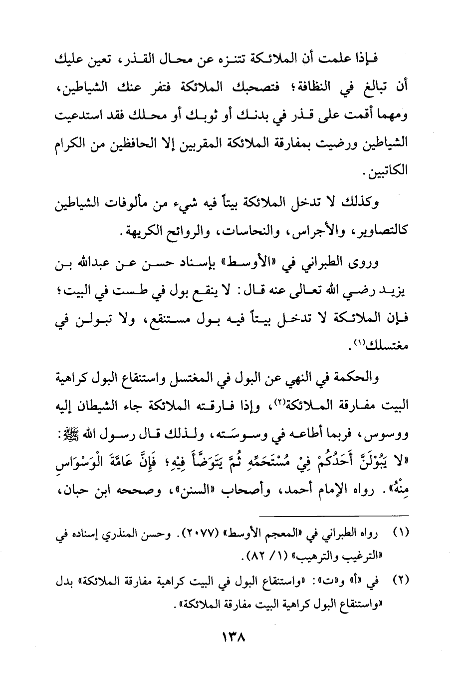 (¬2) في "أ" و "ت": "واستنقاع البول في البيت كراهية مفارقة الملائكة" بدل "واستنقاع البول كراهية البيت مفارقة الملائكة".