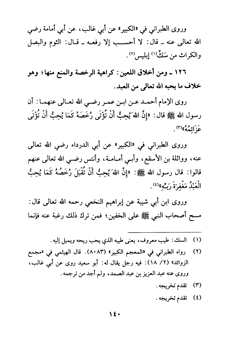 126 - ومن أخلاق اللعين: كراهية الرخصة والمنع منها؛ وهو خلاف ما يحبه الله تعالى من العبد.