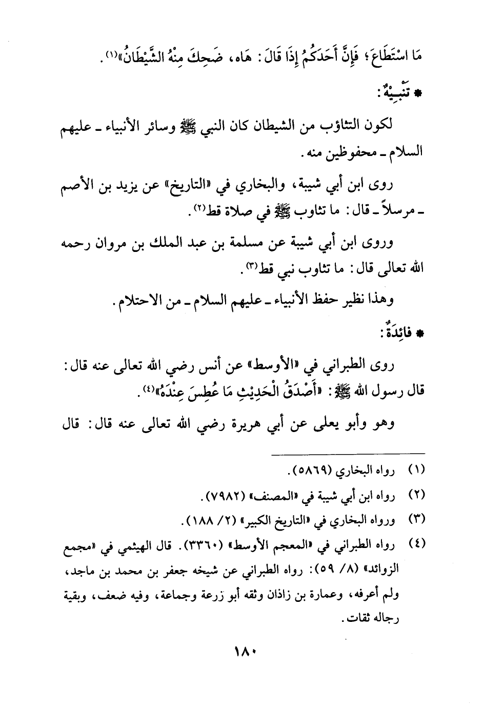 وروى ابن أبي شيبة عن مسلمة بن عبد الملك بن مروان رحمه الله تعالى قال: ما تثاوب نبي قط (¬3).