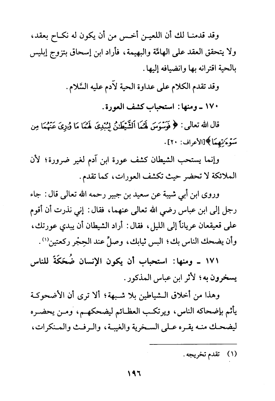 171 - ومنها: استحباب أن يكون الإنسان ضُحَكَةً للناس يسخرون به؛ لأثر ابن عباس المذكور.