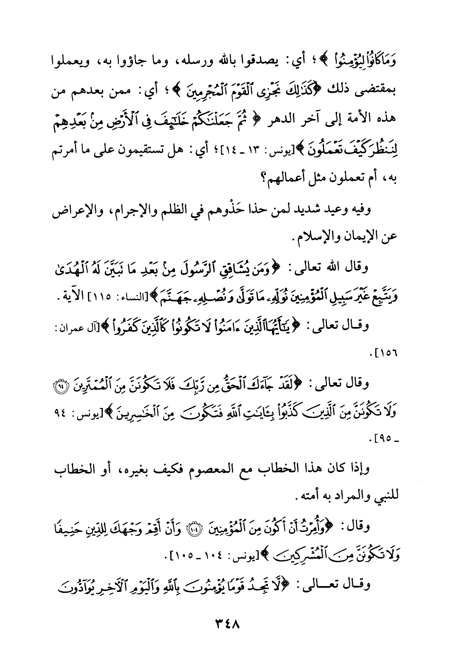 وقال: {وَأُمِرْتُ أَنْ أَكُونَ مِنَ الْمُؤْمِنِينَ (104) وَأَنْ أَقِمْ وَجْهَكَ لِلدِّينِ حَنِيفًا وَلَا تَكُونَنَّ مِنَ الْمُشْرِكِينَ} [يونس: 104 - 105].