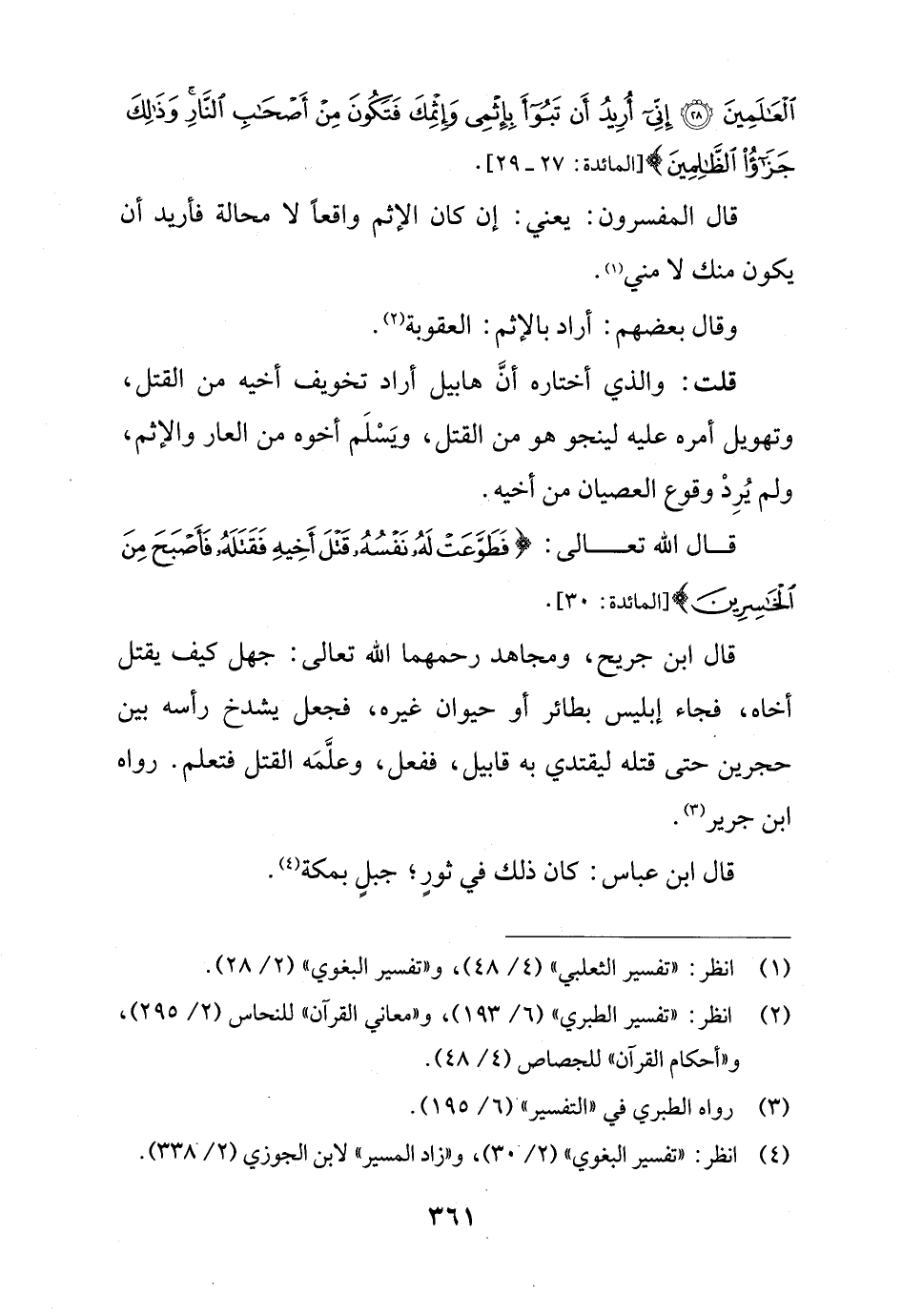 الْعَالَمِينَ (28) إِنِّي أُرِيدُ أَنْ تَبُوءَ بِإِثْمِي وَإِثْمِكَ فَتَكُونَ مِنْ أَصْحَابِ النَّارِ وَذَلِكَ جَزَاءُ الظَّالِمِينَ (29)} [المائدة: 27 - 29].