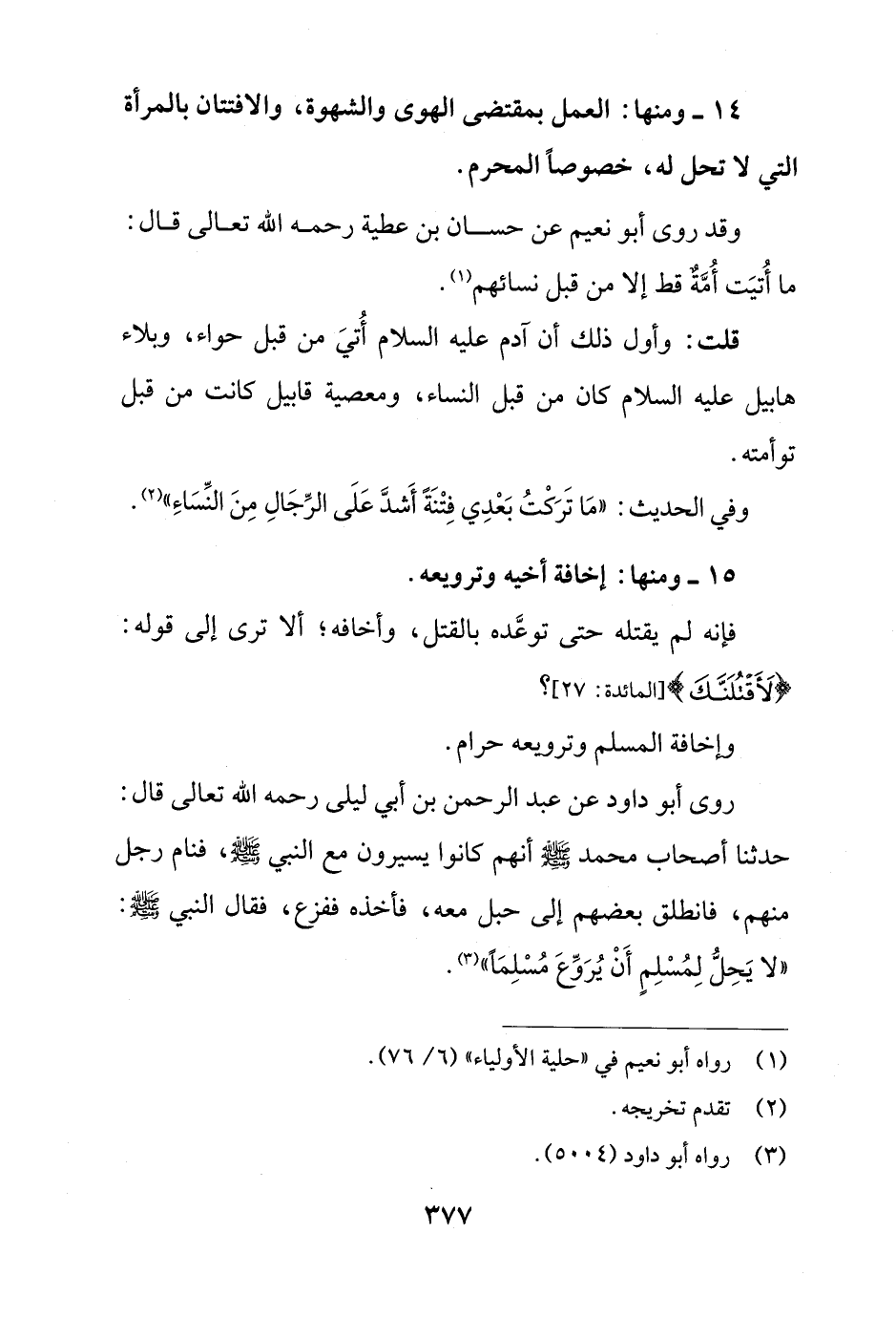 14 - ومنها: العمل بمقتضى الهوى والشهوة، والافتتان بالمرأة التي لا تحل له، خصوصاً المحرم.