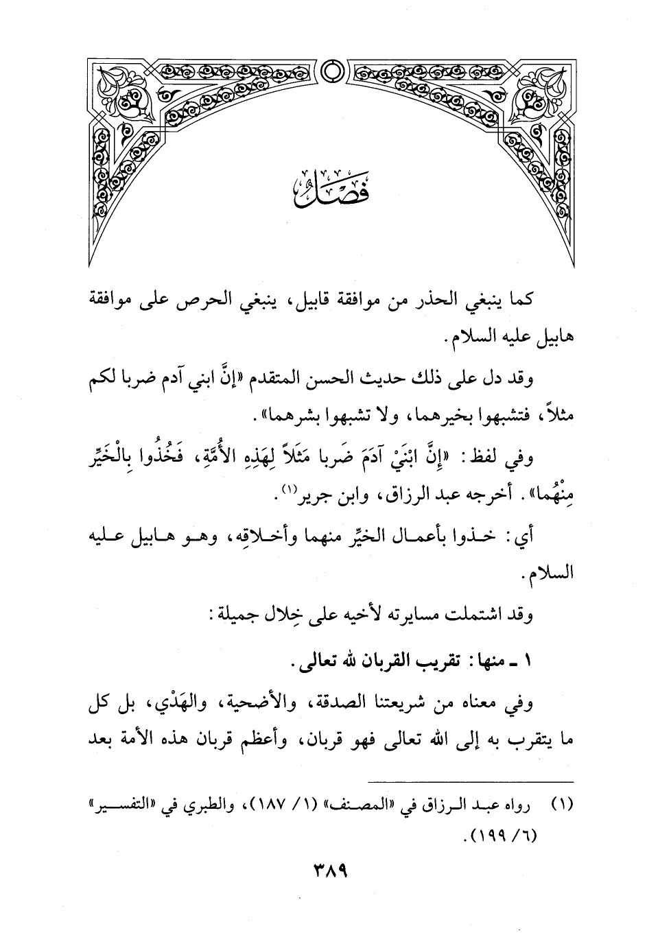 كما ينبغي الحذر من موافقة قابيل، ينبغي الحرص على موافقة هابيل عليه السلام.