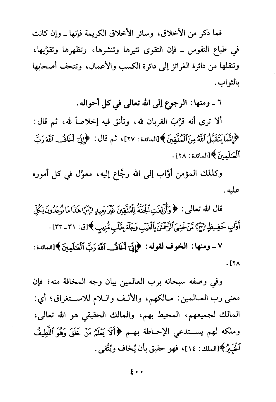 6 - ومنها: الرجوع إلى الله تعالى في كل أحواله.