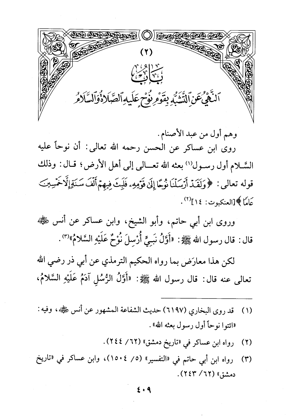 (2) بَابُ النَّهْيِ عَنْ التَّشَبُّهِ بِقَومِ نُوحٍ عَلَيهِ الصَّلَاةُ وَالسَّلَامُ