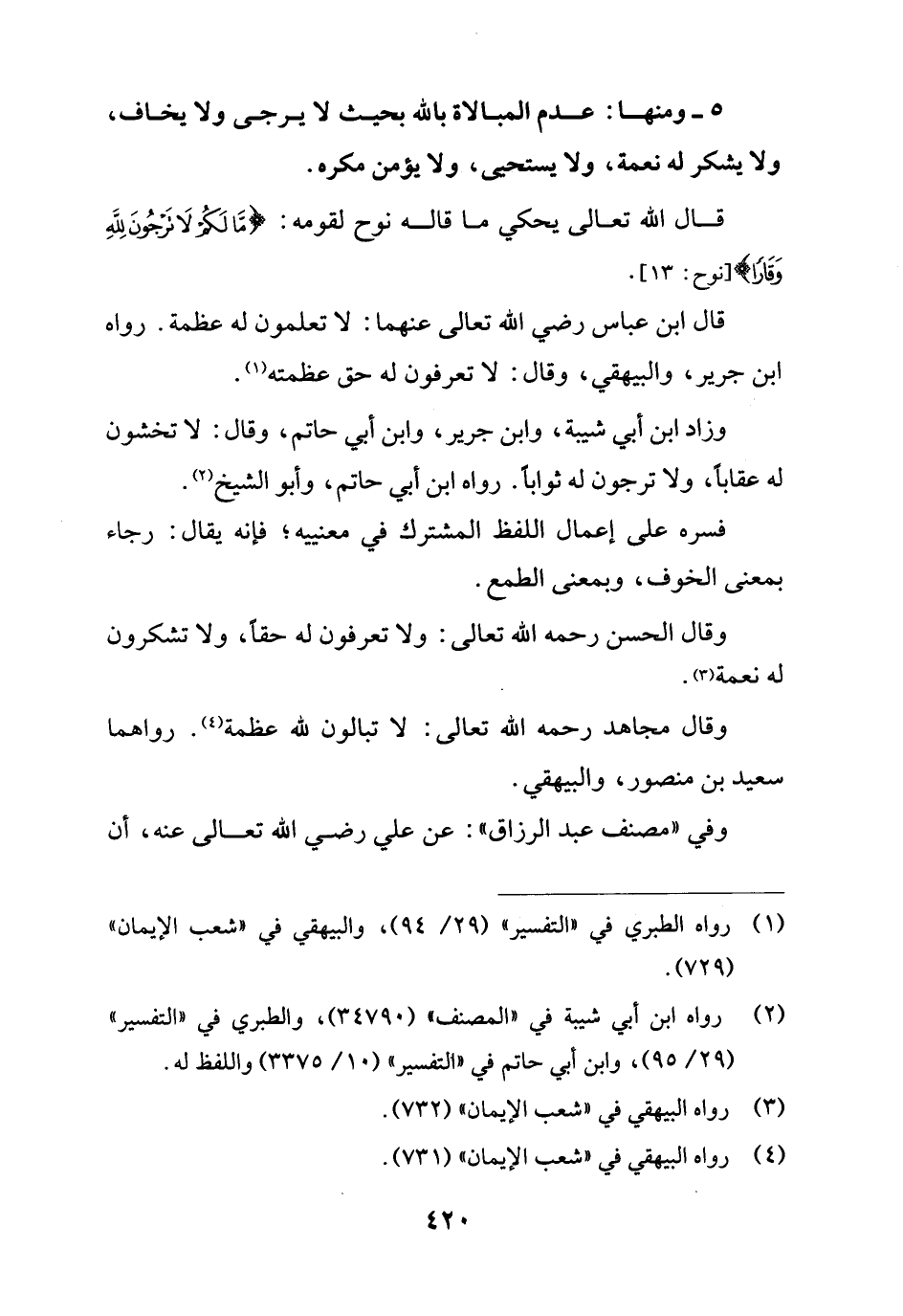 قال الله تعالى يحكي ما قاله نوح لقومه: {مَا لَكُمْ لَا تَرْجُونَ لِلَّهِ وَقَارًا} [نوح: 13].