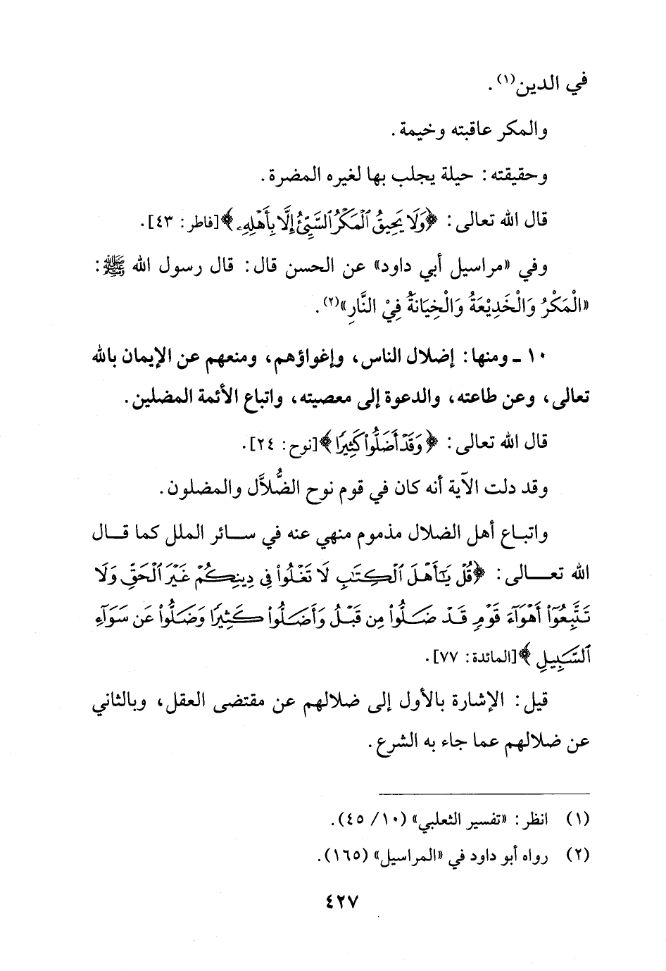 10 - ومنها: إضلال الناس، وإغواؤهم، ومنعهم عن الإيمان بالله تعالى، وعن طاعته، والدعوة إلى معصيته، واتباع الأئمة المضلين.