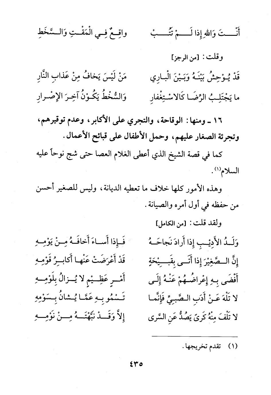إِنَّ الصَّغِيْرَ إِذا أتى بِقَبِيْحَةٍ ... قَدْ أَعْرَضَتْ عَنْها أَكابِرُ قَوْمِهِ