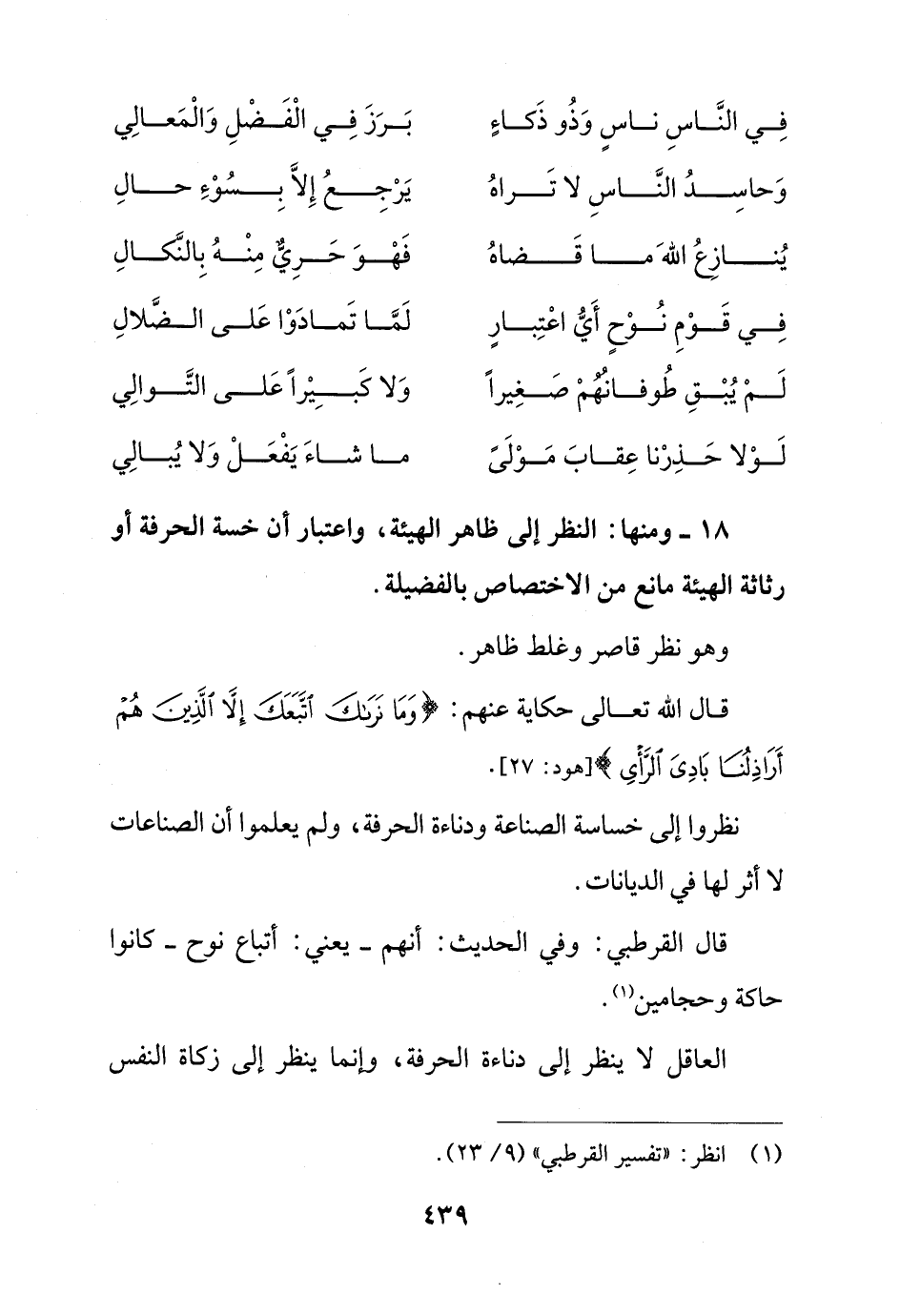 18 - ومنها: النظر إلى ظاهر الهيئة، واعتبار أن خسة الحرفة أو رثاثة الهيئة مانع من الاختصاص بالفضيلة.