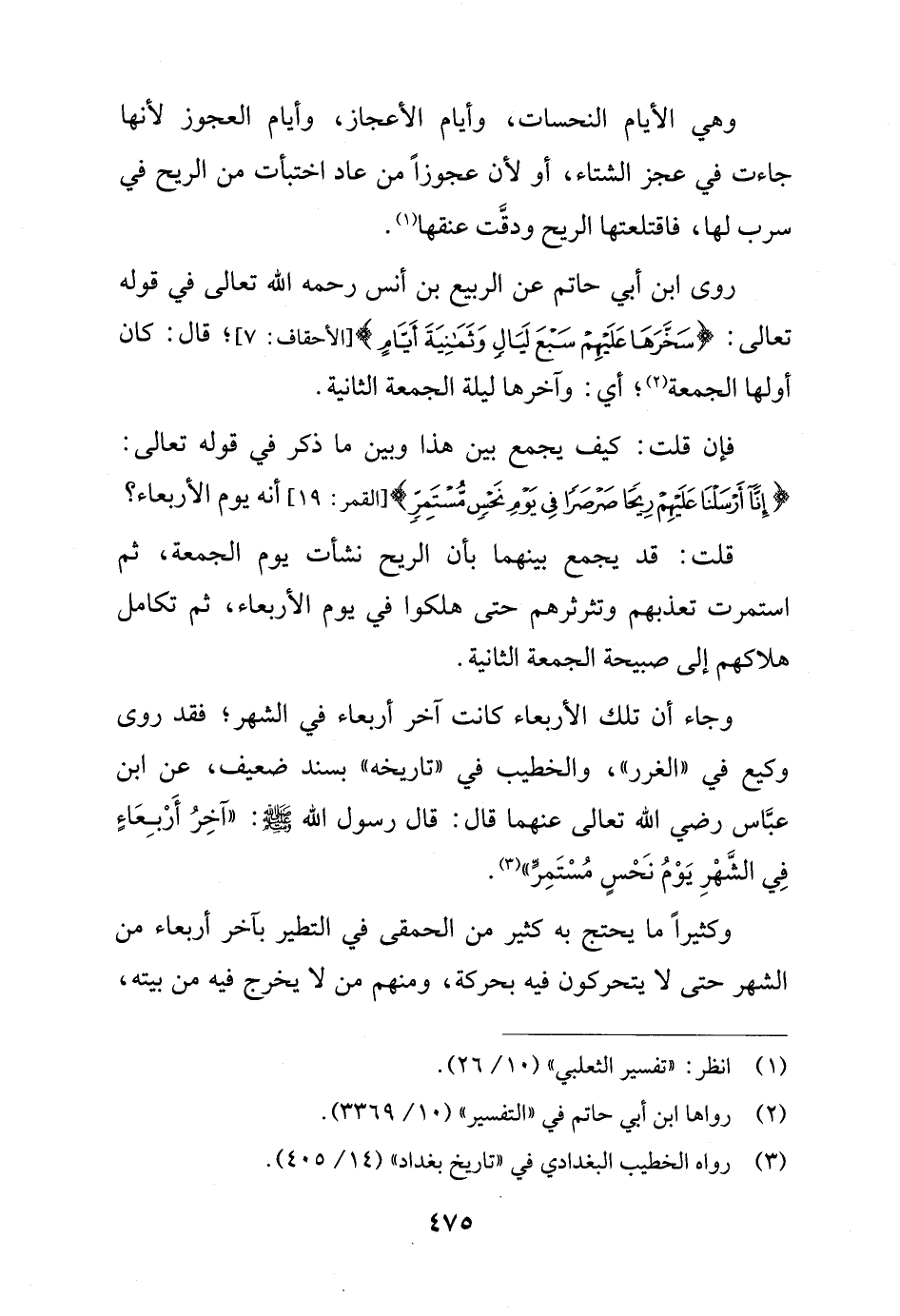وكثيرًا ما يحتج به كثير من الحمقى في التطير بآخر أربعاء من الشهر حتى لا يتحركون فيه بحركة، ومنهم من لا يخرج فيه من بيته،
