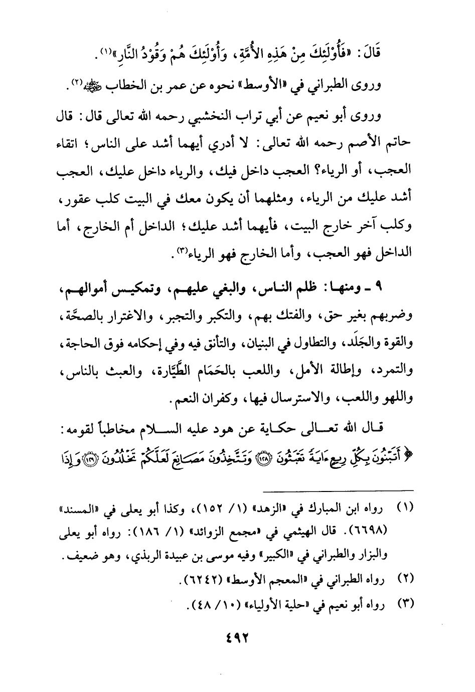 (¬1) رواه ابن المبارك في "الزهد" (1/ 152)، وكذا أبو يعلى في "المسند" (6698). قال الهيثمي في "مجمع الزوائد" (1/ 186): رواه أبو يعلى والبزار والطبراني في "الكبير" وفيه موسى بن عبيدة الربذي، وهو ضعيف.