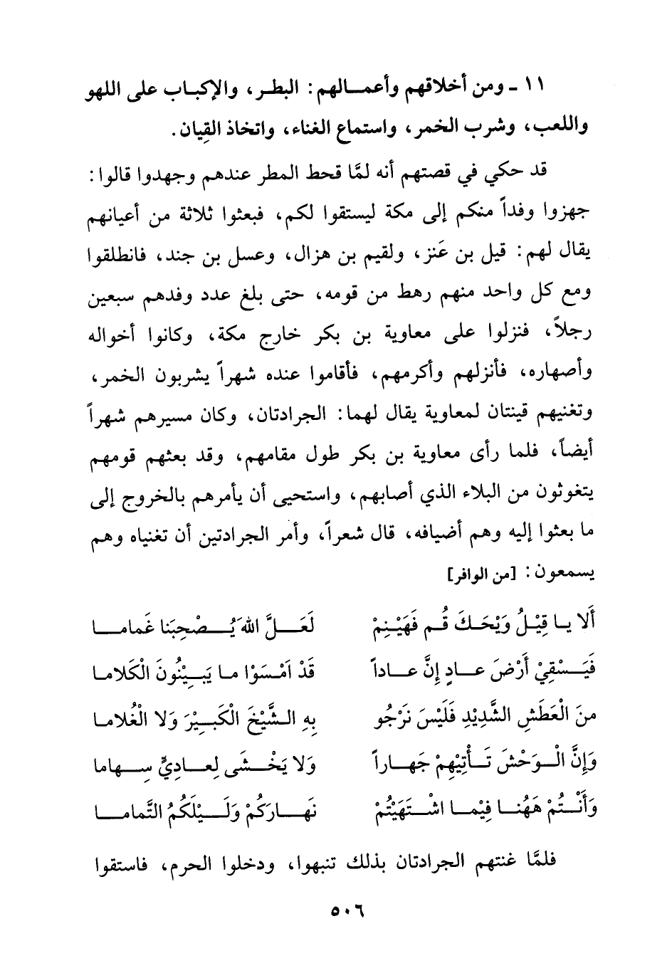 11 - ومن أخلاقهم وأعمالهم: البطر، والإكباب على اللهو واللعب، وشرب الخمر، واستماع الغناء، واتخاذ القِيان.