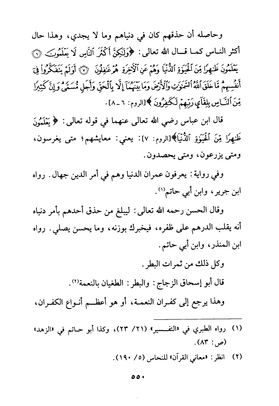 قال ابن عباس رضي الله تعالى عنهما في قوله تعالى: {يَعْلَمُونَ ظَاهِرًا مِنَ الْحَيَاةِ الدُّنْيَا} [الروم: 7]: يعني: معايشهم؛ متى يغرسون، ومتى يزرعون، ومتى يحصدون.