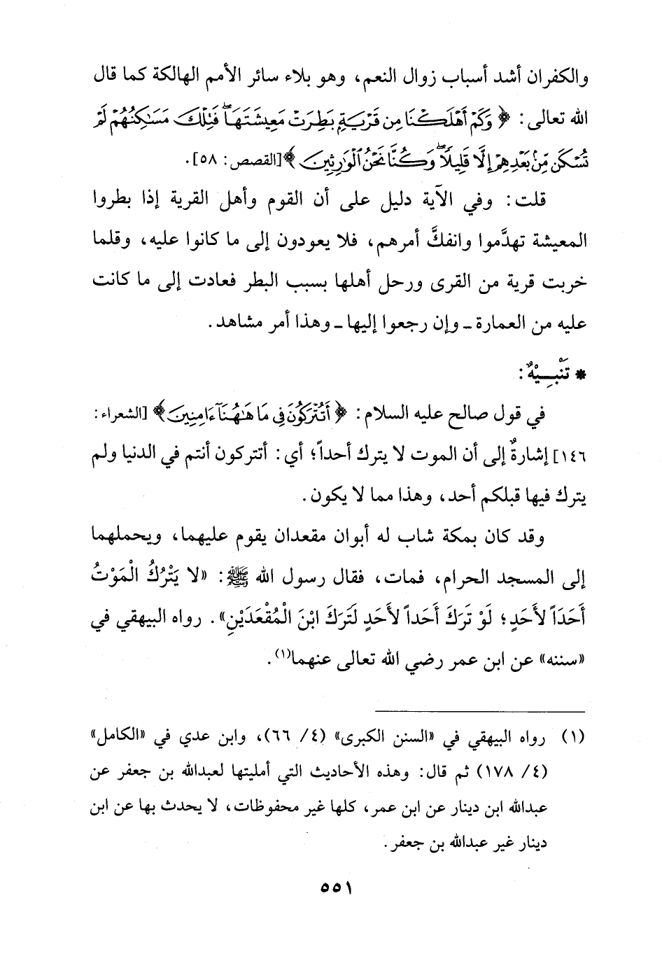 في قول صالح عليه السلام: {أَتُتْرَكُونَ فِي مَا هَاهُنَا آمِنِينَ (146)} [الشعراء: 146] إشارةٌ إلى أن الموت لا يترك أحداً؛ أي: أتتركون أنتم في الدنيا ولم يترك فيها قبلكم أحد، وهذا مما لا يكون.