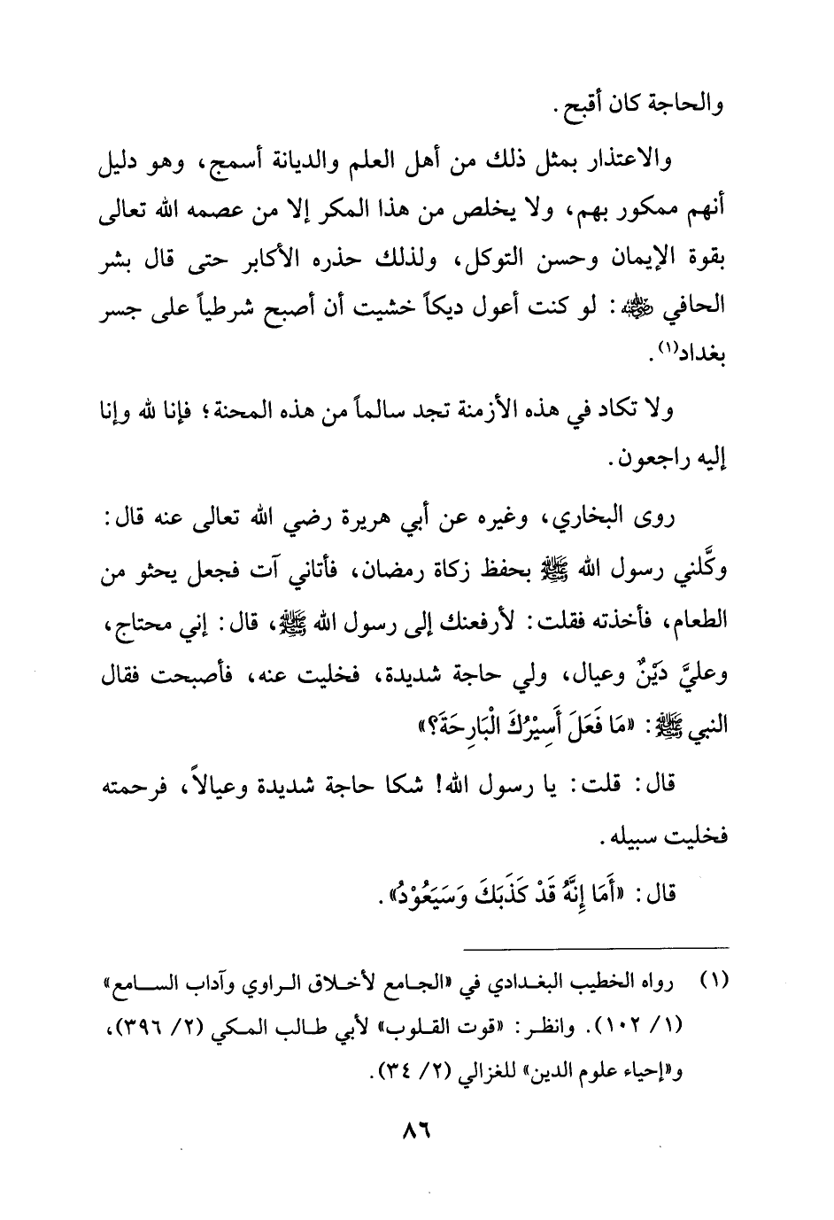 (¬1) رواه الخطيب البغدادي في "الجامع لأخلاق الراوي وآداب السامع" (1/ 102). وانظر: "قوت القلوب" لأبي طالب المكي (2/ 396)، و "إحياء علوم الدين" للغزالي (2/ 34).