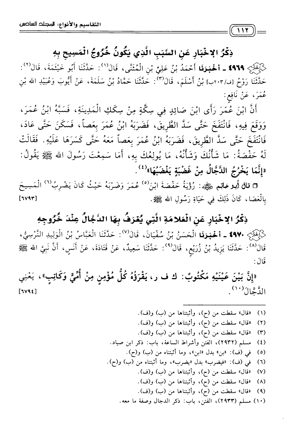 قَالَ أَبُو حَاتِمٍ رَضِيَ اللهُ عَنْهُ: رُؤْيَةُ حَفْصَةَ ابْنَ عُمَرَ وَضَرْبَهُ حَيْثُ كَانَ يَضْرِبُ الْمَسِيحَ بِالْعَصَا، كَانَ ذَلِكَ فِي حَيَاةِ رَسُولِ اللهِ صَلى الله عَلَيه وسَلم. [٦٧٩٣]