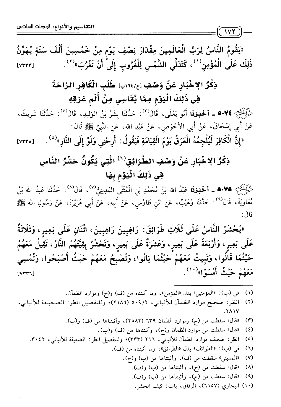 ذِكْرُ الإِخْبَارِ عَنْ وَصْفِ الطَّرَائِقِ الَّتِي يَكُونُ حَشْرُ النَّاسِ فِي ذَلِكَ الْيَوْمِ بِهَا.