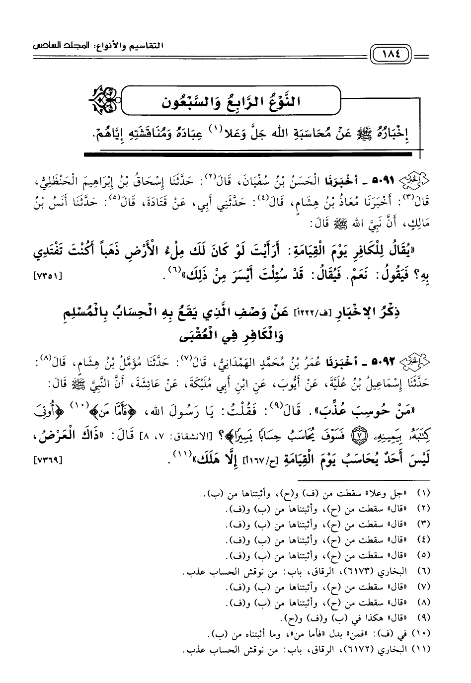 إخباره صلى الله عليه وسلم عن محاسبة الله جل وعلا عباده ومناقشته إياهم.