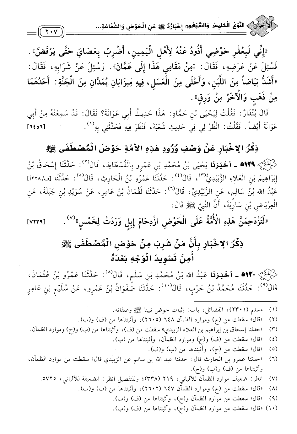 ٥١٢٩ - أَخبَرنا يَحْيَى بْنُ مُحَمَّدِ بْنِ عَمْرٍو، بِالْفُسْطَاطِ، قَالَ: حَدثنا إِسْحَاقُ بْنُ إِبْرَاهِيمَ بْنِ الْعَلَاءِ الزُّبَيْدِيُّ، قَالَ: حَدثنا عَمْرُو بْنُ الْحَارِثِ، قَالَ: حَدثنا عَبْدُ اللهِ بْنُ سَالِمٍ، عَنِ الزُّبَيْدِيِّ، قَالَ: حَدثنا لُقْمَانُ بْنُ عَامِرٍ، عَنْ سُوَيْدِ بْنِ جَبَلَةَ، عَنِ الْعِرْبَاضِ بْنِ سَارِيَةَ؛ أَنَّ النَّبِيَّ صَلى الله عَلَيه وسَلم قَالَ: "لَتَزْدَحِمَنَّ هَذِهِ الأُمَّةُ عَلَى الْحَوْضِ ازْدِحَامَ إِبِلٍ وَرَدَتْ لِخَمْسٍ". [٧٢٣٩]