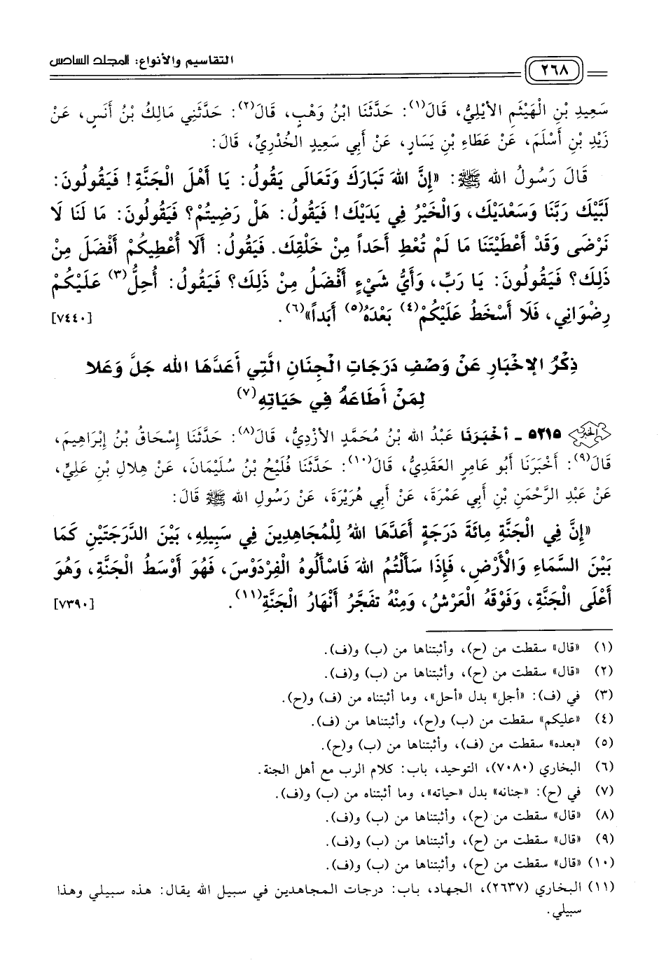 ذِكْرُ الإِخْبَارِ عَنْ وَصْفِ دَرَجَاتِ الْجِنَانِ الَّتِي أَعَدَّهَا اللهُ جَلَّ وَعَلَا لِمَنْ أَطَاعَهُ فِي حَيَاتِهِ.