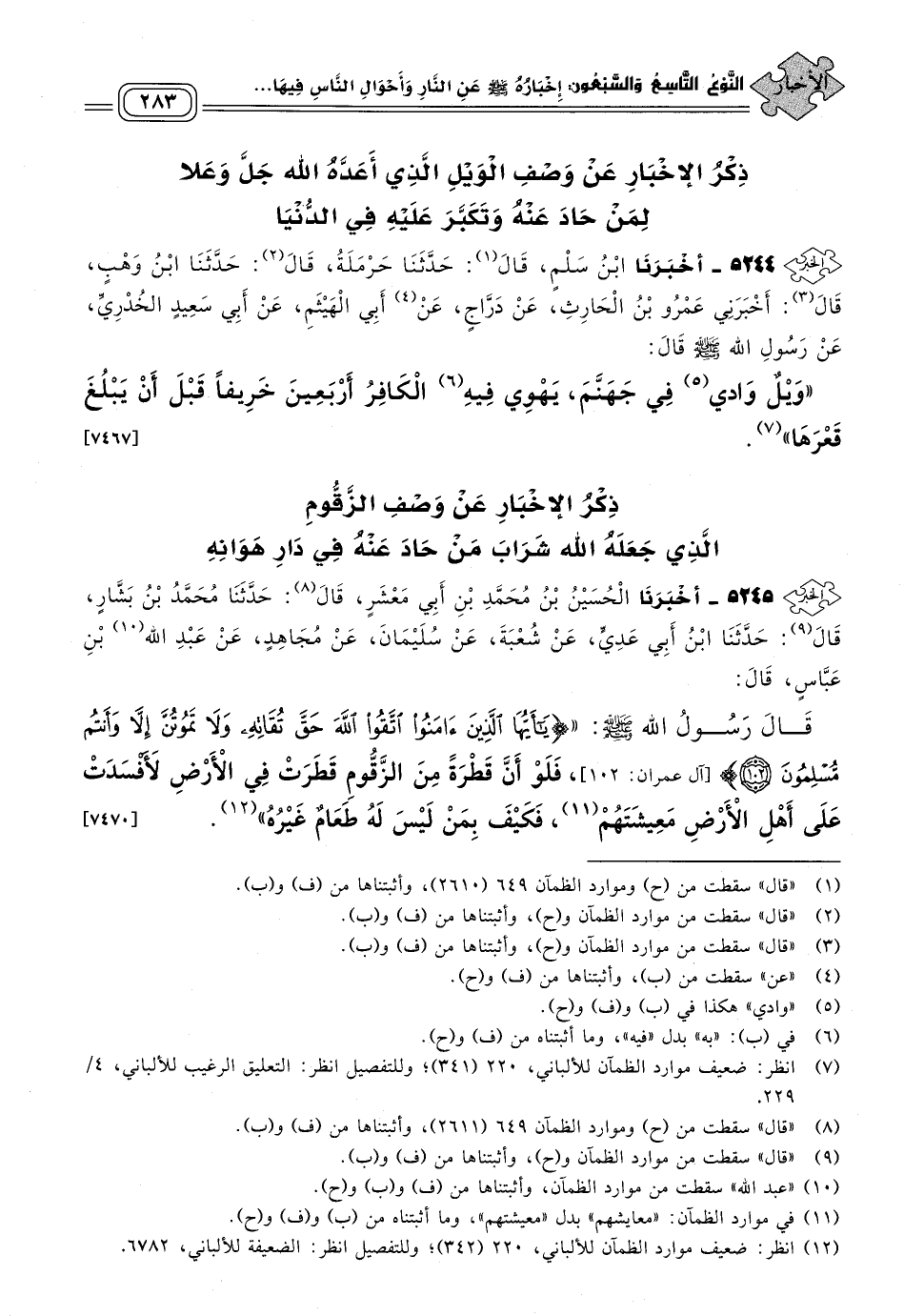 ذِكْرُ الإِخْبَارِ عَنْ وَصْفِ الْوَيْلِ الَّذِي أَعَدَّهُ اللهُ جَلَّ وَعَلَا لِمَنْ حَادَ عَنْهُ وَتَكَبَّرَ عَلَيْهِ فِي الدُّنْيَا.