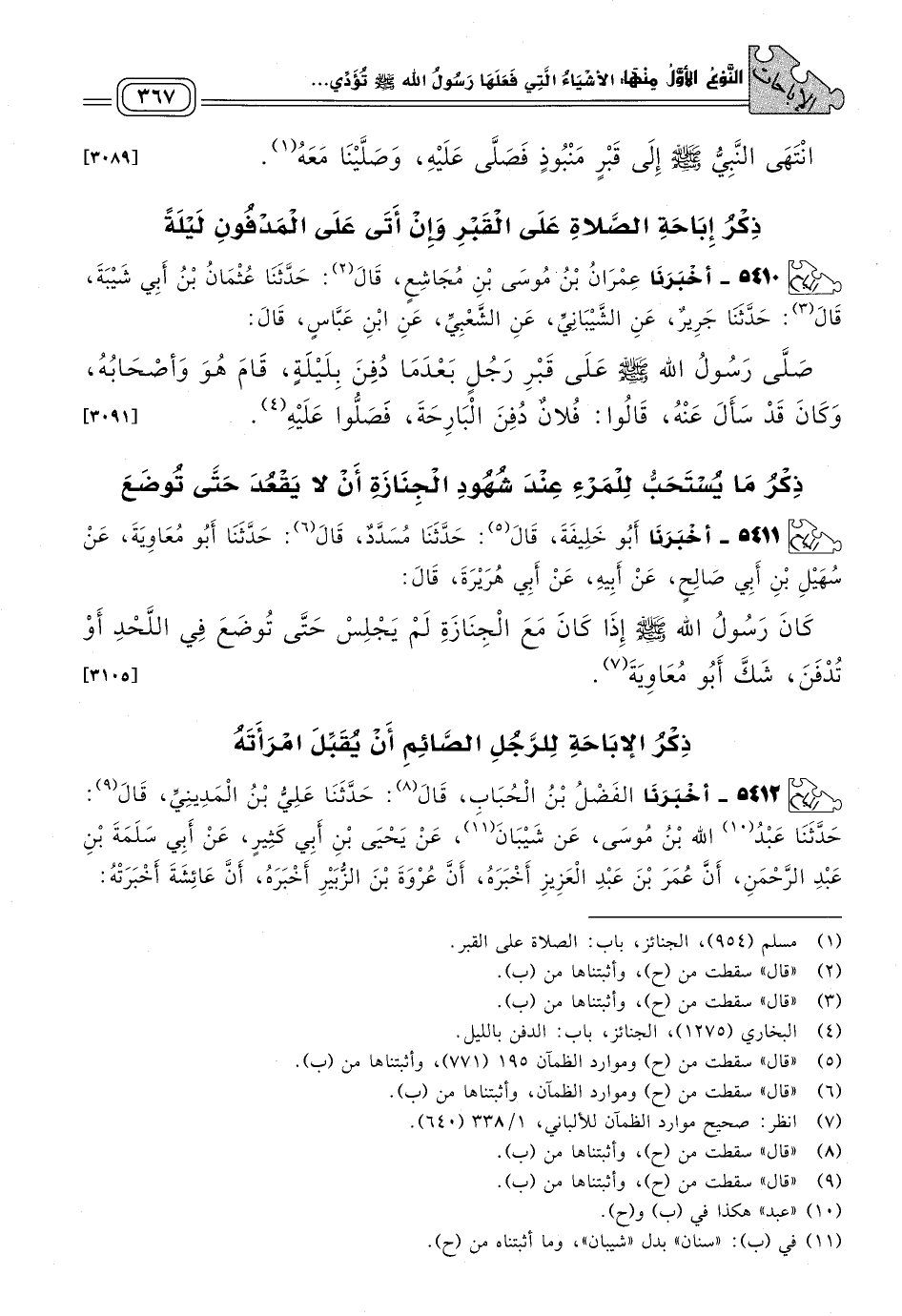 ٥٤١٠ - أَخبَرنا عِمْرَانُ بْنُ مُوسَى بْنِ مُجَاشِعٍ، قَالَ: حَدثنا عُثْمَانُ بْنُ أَبِي شَيْبَةَ، قَالَ: حَدثنا جَرِيرٌ، عَنِ الشَّيْبَانِيِّ، عَنِ الشَّعْبِيِّ، عَنِ ابْنِ عَبَّاسٍ، قَالَ: صَلَّى رَسُولُ اللهِ صَلى الله عَلَيه وسَلم عَلَى قَبْرِ رَجُلٍ بَعْدَمَا دُفِنَ بِلَيْلَةٍ، قَامَ هُوَ وَأَصْحَابُهُ، وَكَانَ قَدْ سَأَلَ عَنْهُ، قَالُوا: فُلَانٌ دُفِنَ الْبَارِحَةَ، فَصَلُّوا عَلَيْهِ. [٣٠٩١]