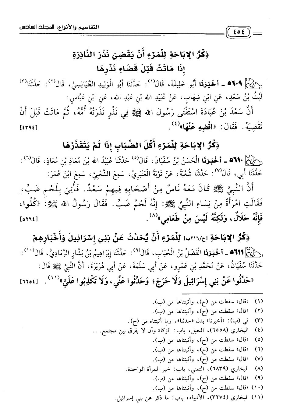 ذِكْرُ الإِبَاحَةِ لِلْمَرْءِ أَنْ يُحَدِّثَ عَنْ بَنِي إِسْرَائِيلَ وَأَخْبَارِهِمْ.