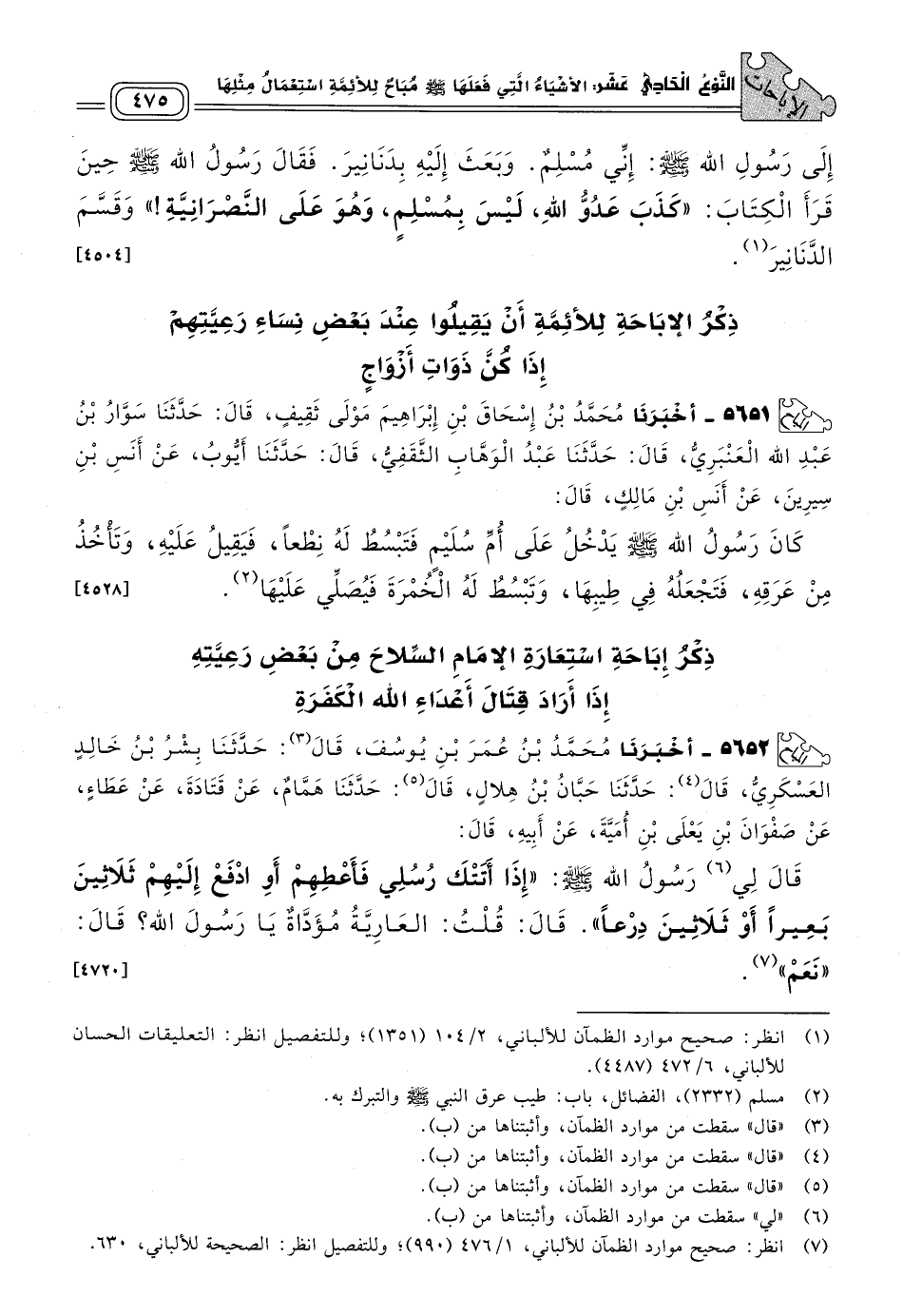 ذِكْرُ الإِبَاحَةِ لِلأَئِمَّةِ أَنْ يَقْيِلُوا عِنْدَ بَعْضِ نِسَاءِ رَعِيَّتِهِمْ إِذَا كُنَّ ذَوَاتِ أَزْوَاجٍ.